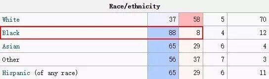 民主党的核武器 贴标签,是民主党煽动仇恨、分裂社会、获得选票的核武器。常用的标签有黑人、穷人、同性恋、女人、穆斯林,人一旦被标签化,自认为属于某个特定群体,那就会展现出非理性、蛮横的动物化倾向,更不用说什么智商了。在前面的租金法案中,房东(有产者)被贴上了贪婪、邪恶的标签,而租客被贴上了可怜的、需要同情的标签。民主党力推的亚裔细分,同样是撕裂社会的标准套路。在标签化运动的背后,人们忘记了社会建设的初衷,不管是何种肤色、种族、性别、宗教,在法律面前,首先是一个人、一个公民,每位公民的合法权利都需要保护。 在不断的身份强化中,黑人群体被民主党坑得最惨。 上图是美国2016年大选后,WIKI上不同族群的投票分布数据。左边蓝色是支持民主党希拉里,中间红色是支持共和党川普。可以看到,白人投票比较分散,接近3:2的支持比例,说明观点独立性比较好;而亚裔和拉丁裔处于中间,接近9:4的支持比例;而黑人群体投票一边倒,竟然达到11:1的支持比例,说明黑人群体的观点独立性很低。