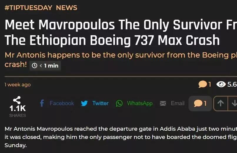 马夫罗普洛斯本来会搭上死亡班机,但迟到了两分钟,登机门已经关上,尽管他赶紧买下一班机的机票,机场人员还是不让他搭机。