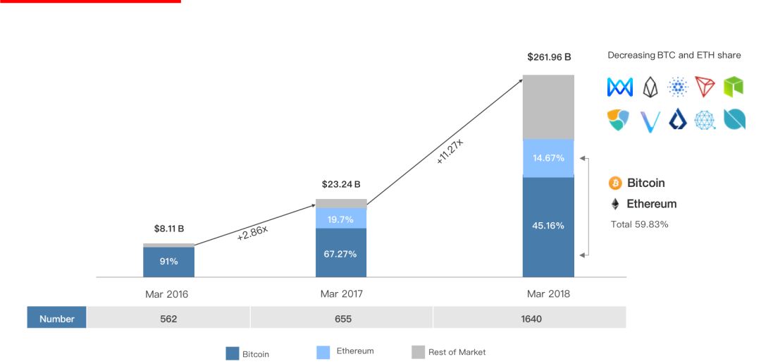 自 2016 年以来,区块链公链数量呈爆发式增长,到 2018 年为止,其数量增长超过 33 倍。与此同时,比特币与以太坊的总市场占有率下降到不足 60%,显然,公链项目的生态完备性将成为其市场竞争的核心要素。为此, Skrumble Network(SKM)与合作伙伴共同发起的生态系统基金Skrumble Eco-Fund(SEF),旨在为其公链生态相关区块链项目赋能,从而打造顶级的公链生态系统。
