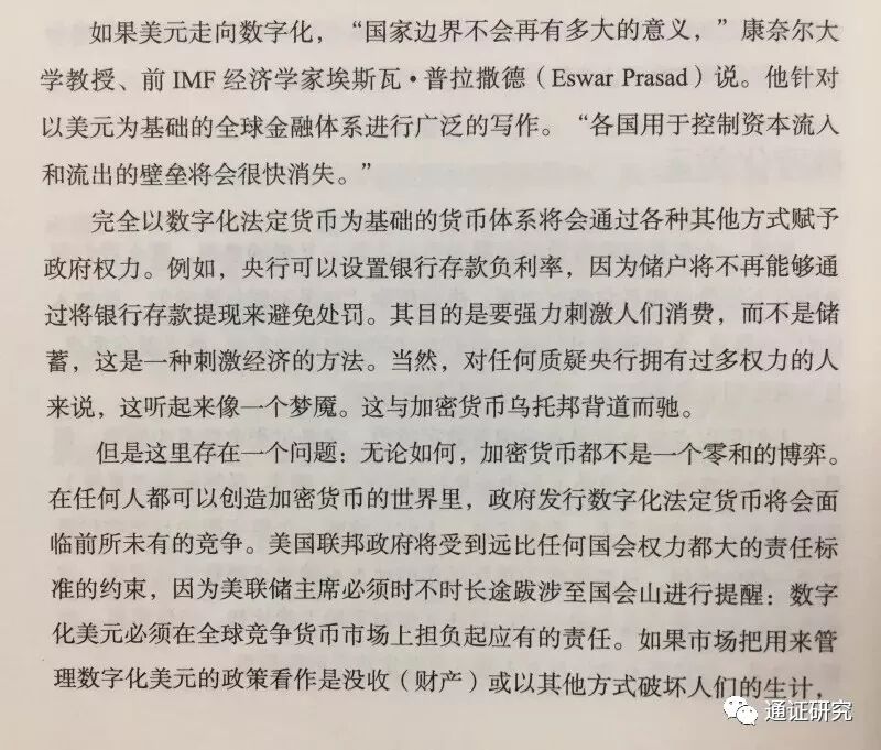 • 2015年1月出版的某书中,作者引述IMF经济学专家(康奈尔大学教授、IMF中国处处长)观点:“国家边界不会再有多大意义”,“各国用于控制资本流入和流出的壁垒将会很快消失”,说明美专家早已意识到数字美元摧毁性的力量。